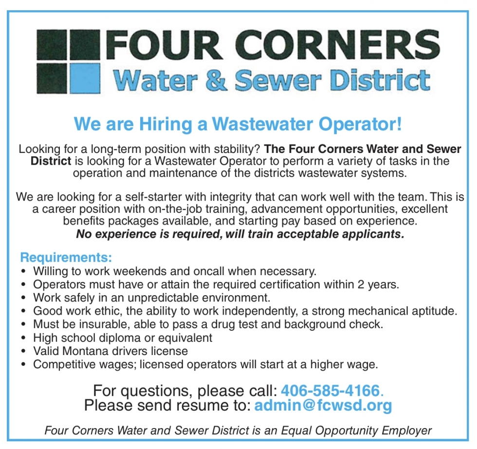 Jobs for Four Corners Water and Sewer District in Western Montana