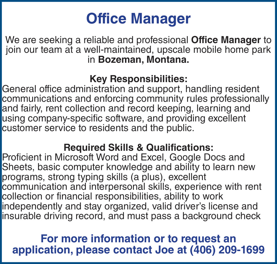 Office Manager Job Near Me in Bozeman, MT